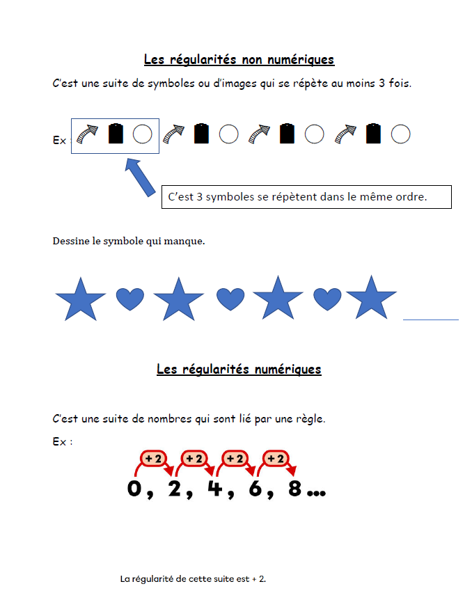 Voici une capsule qui explique les régularités non numériques et numériques. (1ère et 2e année)